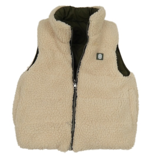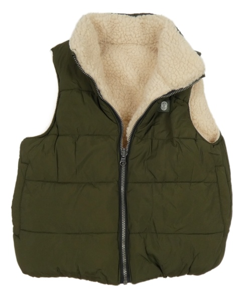 Khaki prošívaná šusťáková zateplená oboustranná vesta s nášivkou Matalan