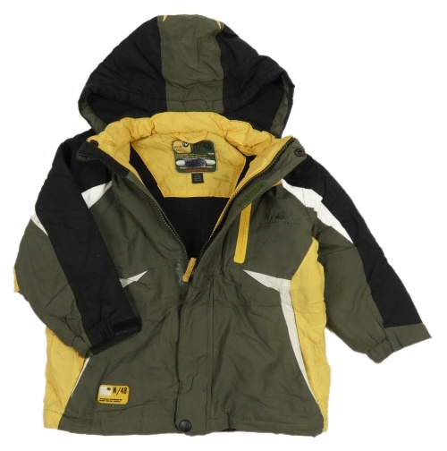 Khaki-černo-žlutá šusťáková zimní bunda s kapucí Next
