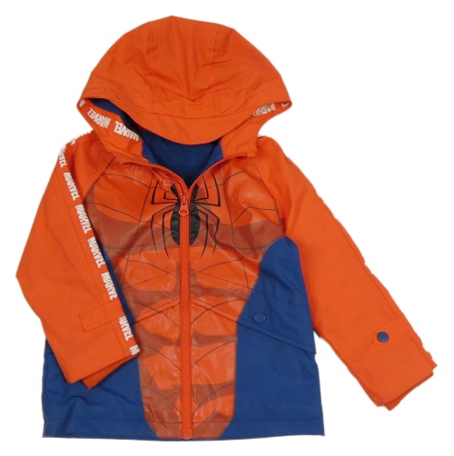 Červeno-tmavomodrá nepromokavá podzimní bunda se Spider-manem a kapucí Marvel