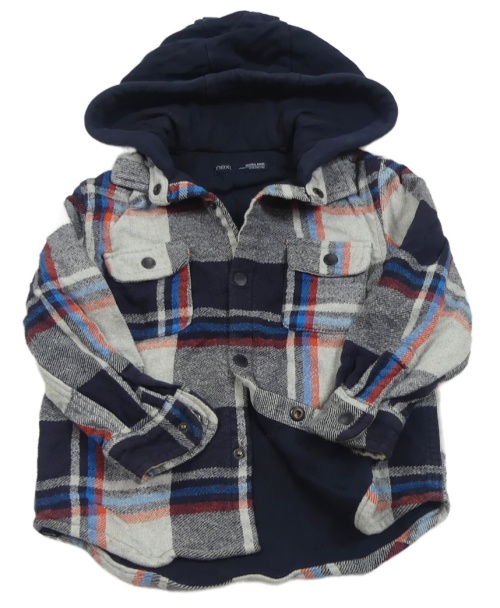 Světlešedo-tmavomodro-červeno-modrá kostkovaná podšitá košilová bunda s kapucí Next