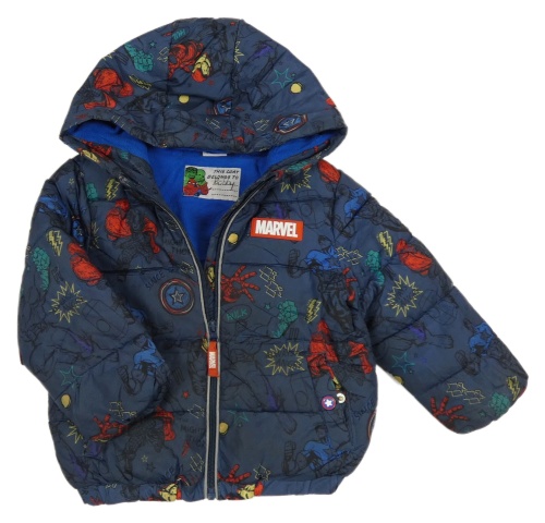 Tmavomodrá melírovaná prošívaná šusťáková zimní bunda s Avengers a kapucí MARVEL