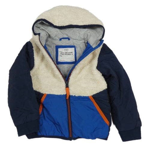 Tmavomodro-modro-smetanová šusťáková/huňatá zateplená bunda s kapucí M&S