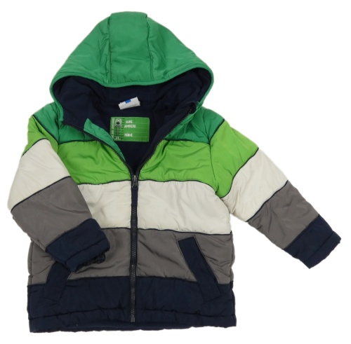Zeleno-bílo-šedá šusťáková zimní bunda s kapucí Topolino