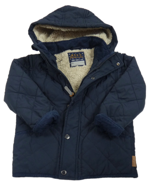 Tmavomodrá prošívaná šusťáková zateplená bunda s kapucí Next