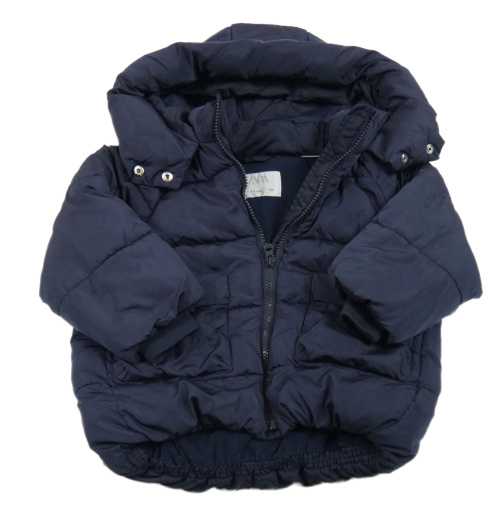 Tmavomodrá šusťáková prošívaná zimní bunda s kapucí Zara