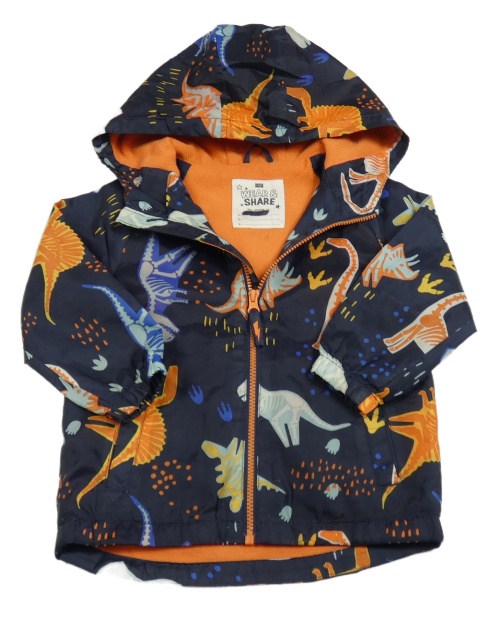 Tmavomodrá šusťáková jarní bunda s dinosaury a kapucí F&F
