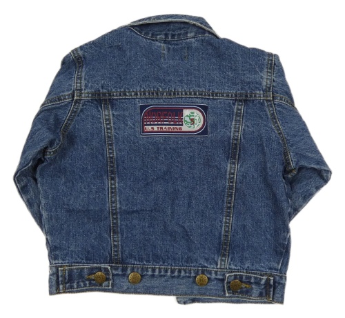 Tmavomodrá riflová bunda s nášivkami
