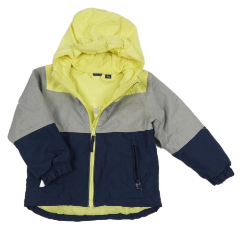 Žluto-šedo-tmavomodrá šusťáková zimní funkční bunda s kapucí Lupilu