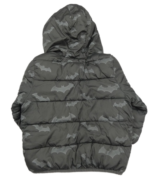 Tmavošedá šusťáková zateplená bunda s netopýry a kapucí - Batman