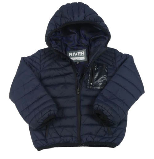 Tmavomodrá prošívaná šusťáková zateplená bunda s kapucí RIVER ISLAND