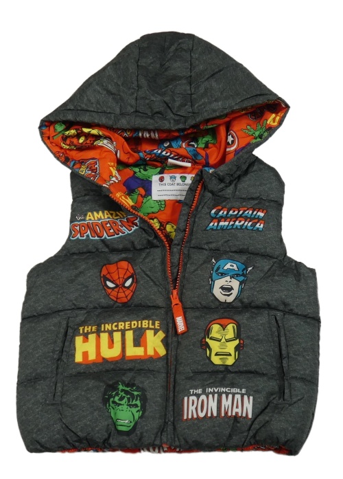 Šedá šusťáková zateplená vesta se superhrdiny a kapucí Marvel