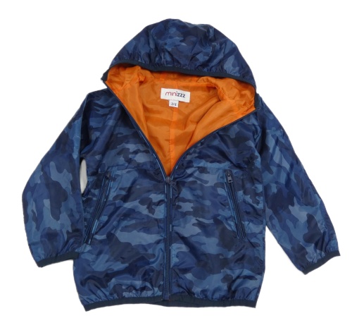 Tmavomodrá army šusťáková jarní bunda s kapucí