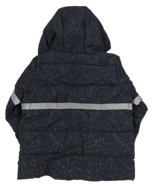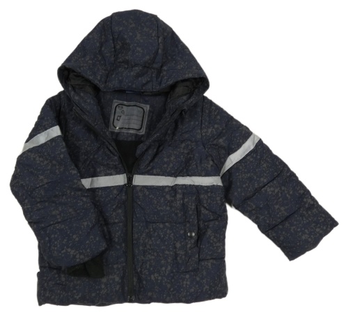 Tmavomodro/šedá skvrnitá prošívaná šusťáková zimní bunda s kapucí lupilu