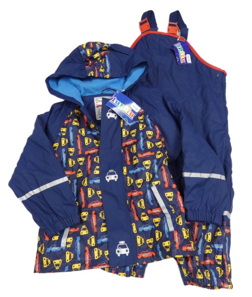 Nové- 2set- tmavomodrá nepromokavá podzimní bunda s auty a kapucí+ laclové podšité kalhoty Lupilu