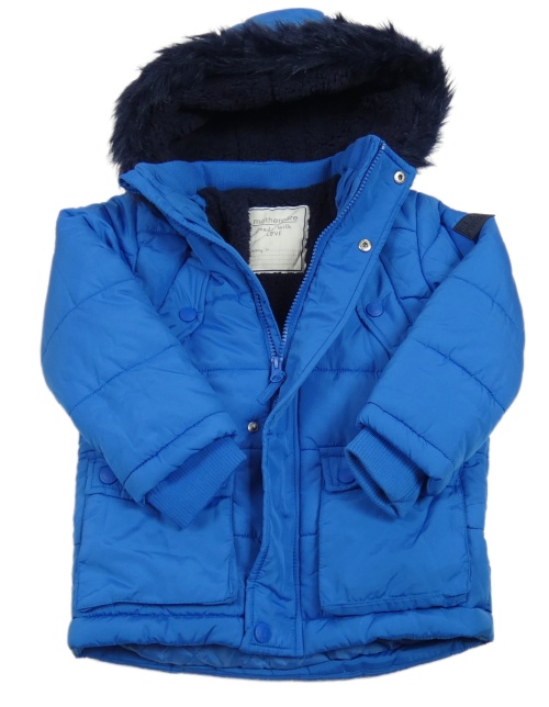 Modrá šusťáková zimní bunda s kapucí a kožíškem Mothercare