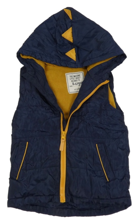 Tmavomodrá šusťáková zateplená vesta s ostny a kapucí Matalan