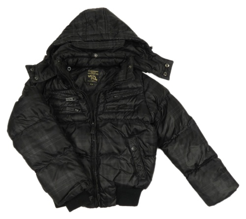 Černá kostkovaná šusťáková zimní bunda s kapucí
