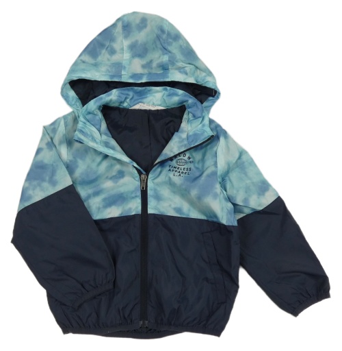 Tmavomdro-modro-světlemodrá šusťáková jarní bunda s nápisy a odepínací kapucí H&M
