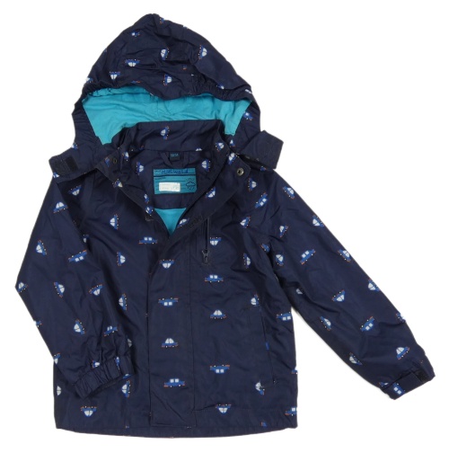 Tmavomodrá šusťáková jarní bunda s auty a kapucí Pocopiano