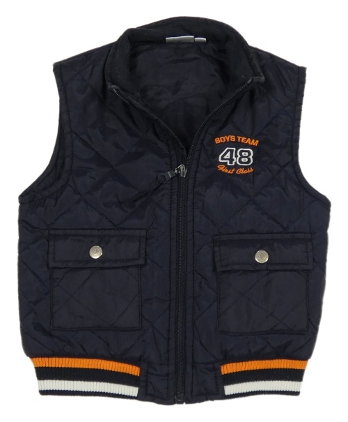 Tmavomodrá šusťáková prošívaná zateplená vesta s výšivkou Impidimpi