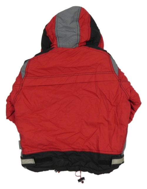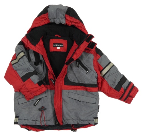 Červeno-černo-bílá šusťáková zimní bunda s kapucí