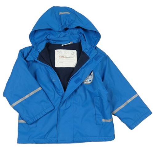 Modrá nepromokavá podzimní bunda se zvířátky a odepínací kapucí impidimpi