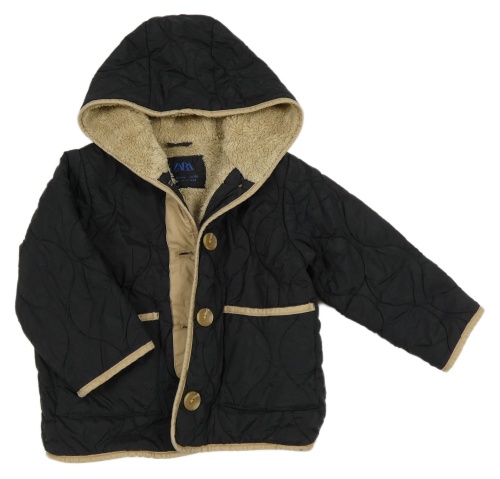 Černo-béžová šusťáková prošívaná zimní bunda s kapucí Zara