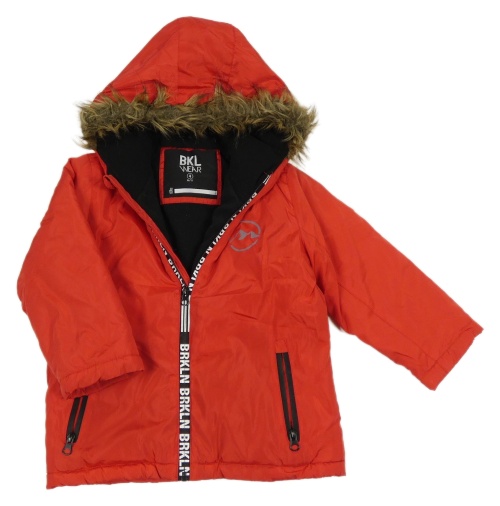 Červená šusťáková zimní bunda s kapucí s kožešinou BKL