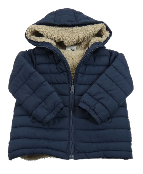 Tmavomodrá šusťáková prošívaná zimní bunda s kapucí Topolino