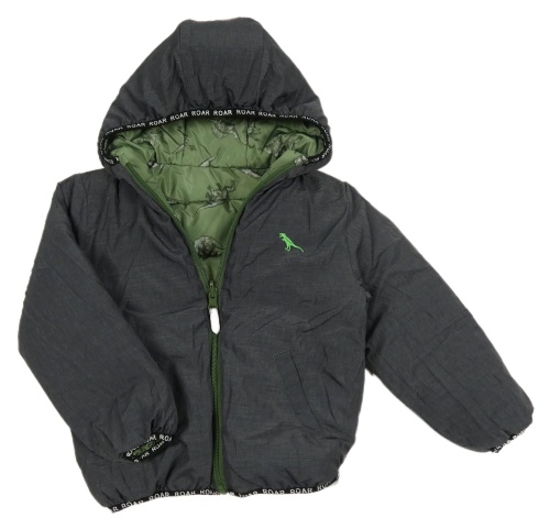 Tmavošedá šusťáková zimní oboustranná bunda s dinem a kapucí Nutmeg