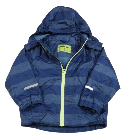 Tmavomodro-modrá pruhovaná šusťáková jarní bunda s odepínací kapucí Pocopiano