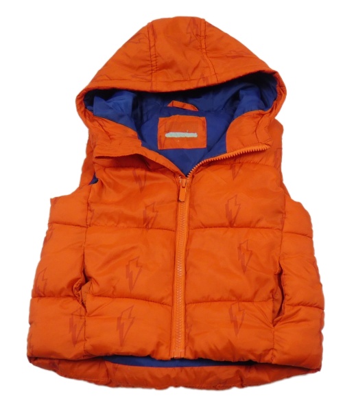 Červená šusťáková zateplená vesta s blesky a kapucí Primark