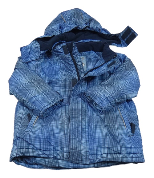 Modro-tmavomodrá kostkovaná šusťáková zimní bunda s odepínací kapucí