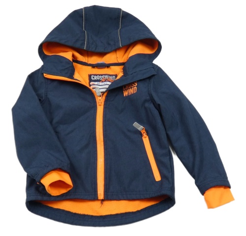 Tmavomodro-křiklavě oranžová melírovaná softshellová bunda s nápisy a kapucí dopodopo