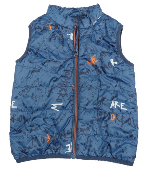 Tmavomodrá šusťáková zateplená vesta s flíčky a nápisy Name it
