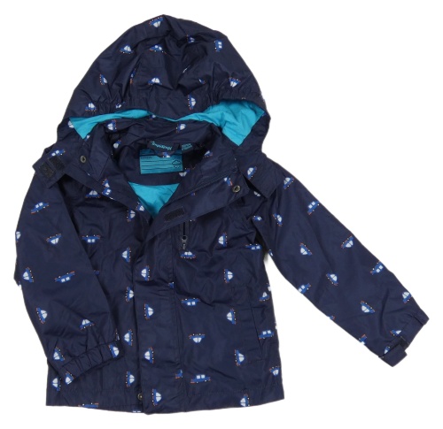 Tmavomodrá šusťáková jarní bunda s auty a kapucí Impidimpi
