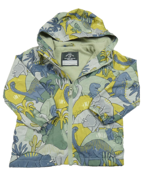 Světlezeleno-hořčicová vzorovaná šusťáková jarní bunda s dinosaury a kapucí George