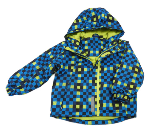 Modro-černo-limetková kostkovaná šusťáková lyžařská bunda s kapucí Lupilu