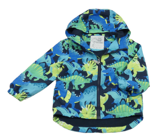 Tmavomodrá šusťáková jarní bunda s dinosaury a kapucí Nutmeg