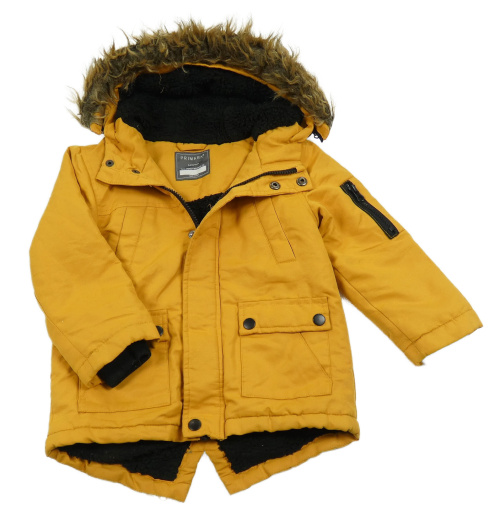 Hořčicová šusťáková zateplená bunda s kapucí s kožešinou Primark