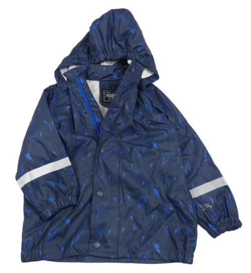 Tmavomodrá nepromokavá bunda s blesky a kapucí