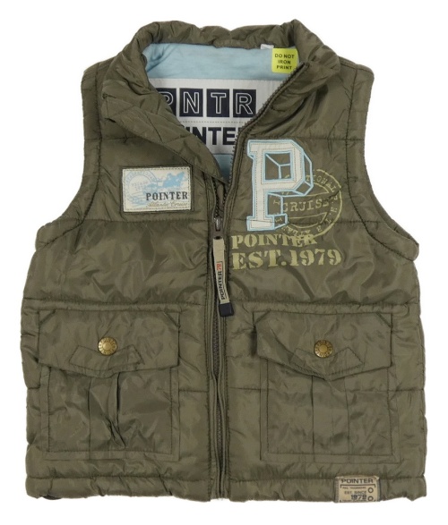 Khaki šusťáková zateplená vesta s písmenem a nášivkou