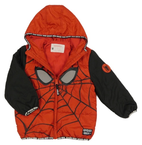 Červeno-černá šusťáková zateplená bunda se Spidermanem a kapucí Nutmeg