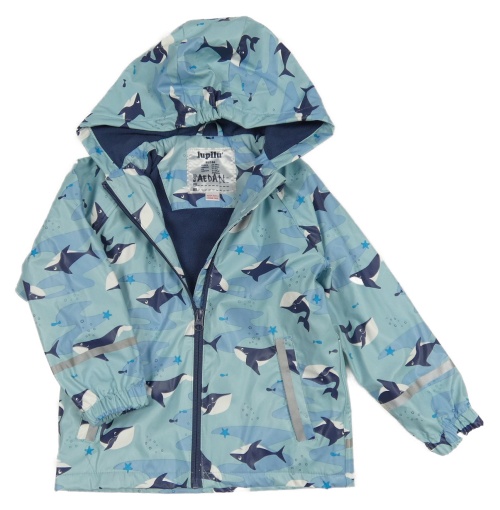 Světlemodrá nepromokavá zateplená bunda se žraloky a kapucí Lupilu