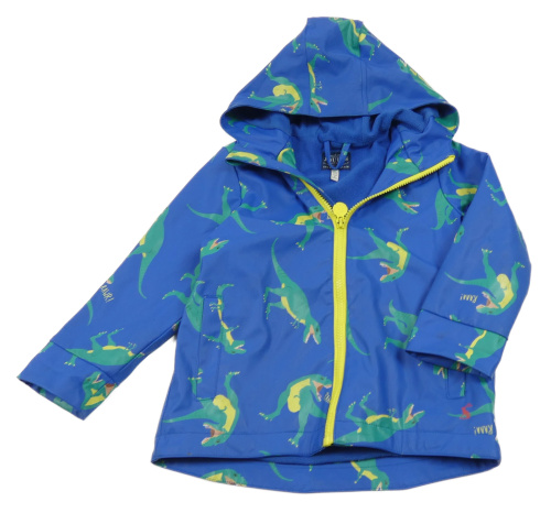 Safírová nepromokavá jarní bunda s dinosaury a kapucí joules