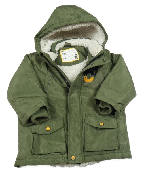 Khaki šusťáková zimní bunda s písmenkem a kapucí Kiki&Koko