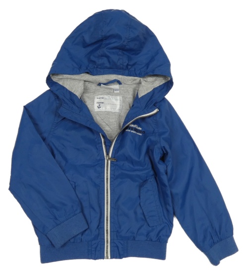 Tmavomodrý šusťákový jarní bomber s nápisy a kapucí impidimpi