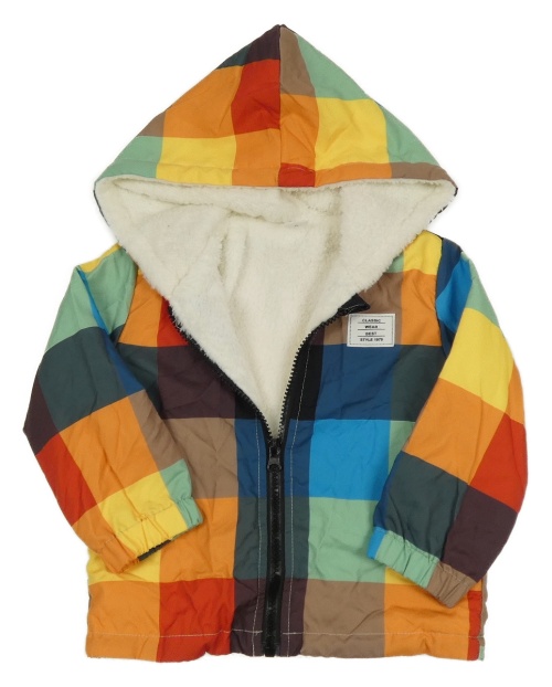 Barevná kostkovaná šusťáková zateplená bunda s nášivkou a kapucí SHEIN