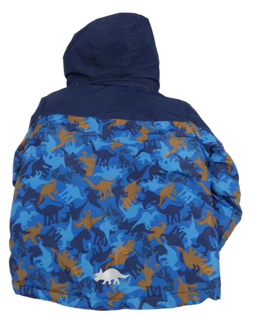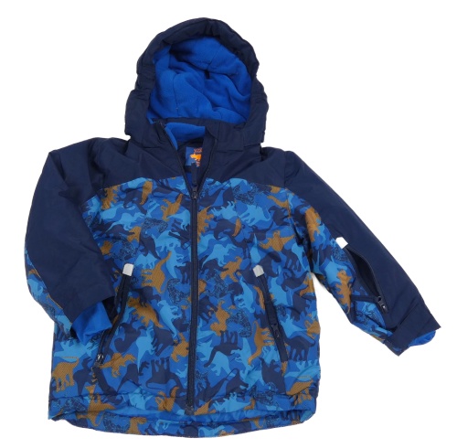 Modro-tmavomodrá šusťáková zimní bunda s dinosaury a kapucí Kiki&Koko
