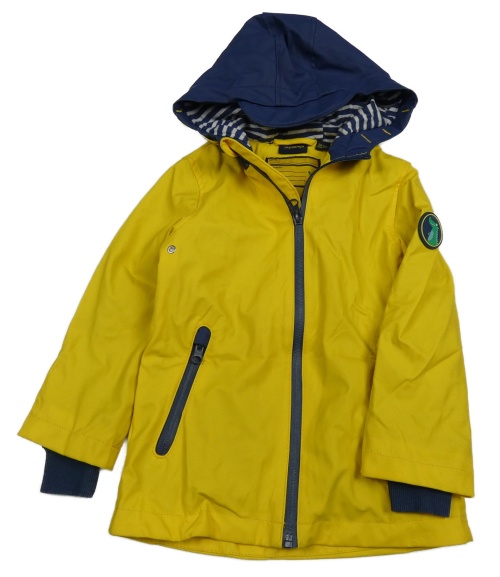 Žluto-tmavomodrá nepromokavá jarní bunda s nášivkou a kapucí impidimpi